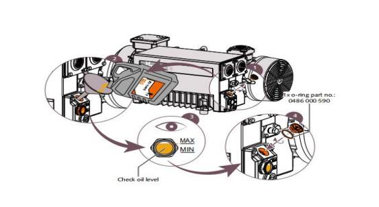 3.停機后,由于真空系統的真空作用,導致大量油從油分離器被吸入真空泵腔內,重新啟動由于油不能被壓縮,造成葉片損壞