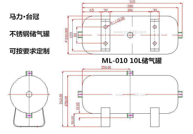 馬力·臺(tái)冠,不銹鋼儲(chǔ)罐,緩沖氣罐??砂葱枰蠖ㄖ疲?L,6L,8L,10L,12L等。
